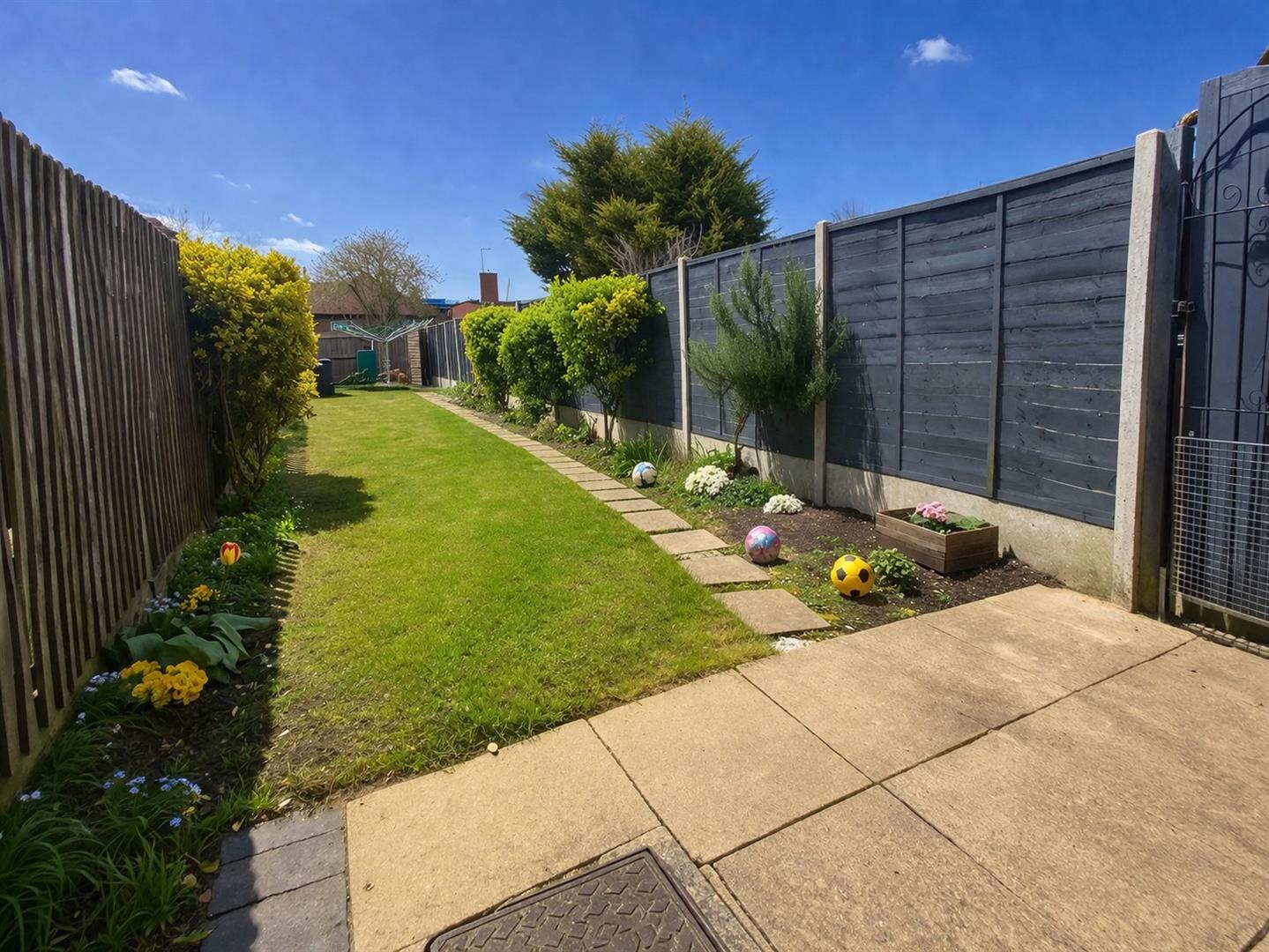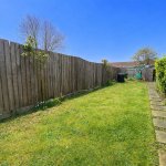 Enclosed garden to rear with panelled fencing, paved seating area and laid to lawn.