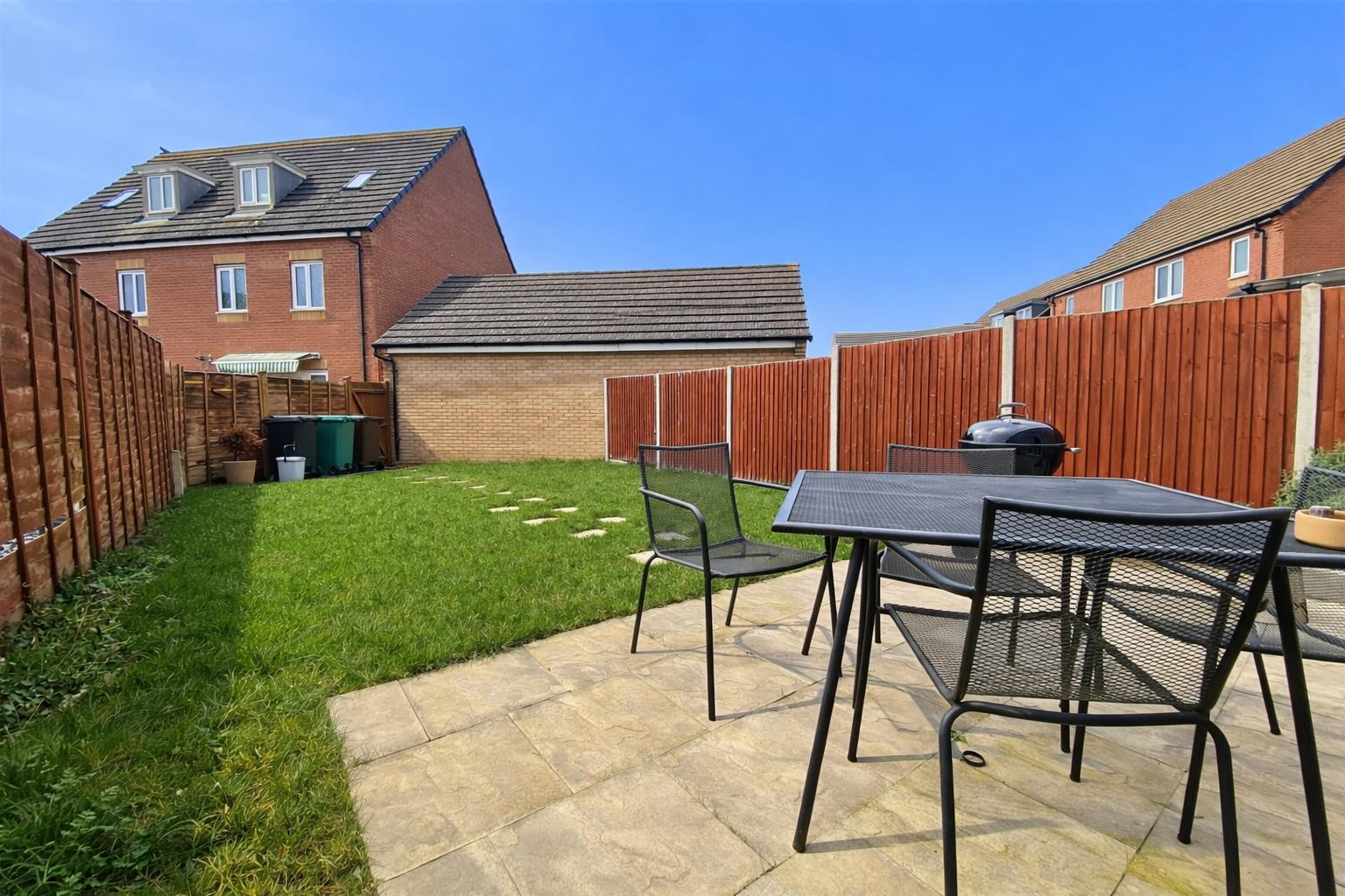 Enclosed garden to rear with lawn area, paved patio seating area and gated rear access. Single garage and parking.