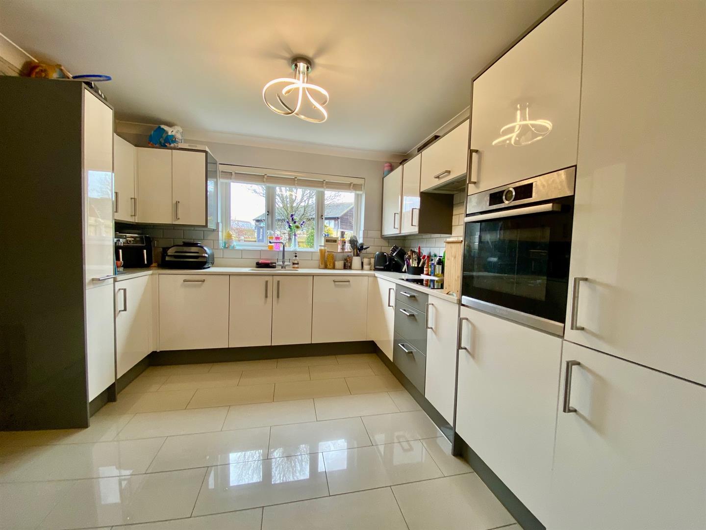 Enclosed garden to rear with paved patio seating area, lawn area, panelled fencing and courtesy door to garage. Double width driveway leads to the double garage.